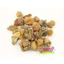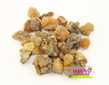 Аромат: насыщенный, теплый, бальзамический. Смола Мирры- застывший на воздухе экссудат, который вытекает из поврежденных мест деревьев семейства бурзеровых. Смола мирры имеет противовоспалительные, регенерирующие, тонизирующие, успокаивающие, антисептические свойства. Останавливает преждевременное старение кожи. Укрепляет волосы. Рассасывает шрамы и рубцы. Смола мирры особенно эффективно справляется с трудно заживляющимися ранами. Её очень часто добавляют в крема для лечения глубоких трещин на пятках и руках. Запах смолы мирры снимает депрессивные и нервные расстройства и нормализует сон. В мыловарении порошок из смолы служит для придания розовато-коричневого цвета. Его вводят в количестве 2-5 гр на 100 гр основы. Мелкие кусочки смолы можно использовать для украшения мыла, выкладывая из них различные рисунки на не полностью застывшем мыле.А можно густо посыпать одну сторону мыла и получить прекрасный скраб для ног. Который будет полезен для лечения и профилактики грибковых заболеваний ступней. Кроме того, ванну наполнит дивный аромат мирры. Смола мирры хорошо измельчается в ступке.Во время нагревания смола плавится, поэтому при ее измельчении лучше не применять электроприборы. Смолу мирры можно использовать для приготовления спиртового раствора – резиноида. Для этого смола смешивается со спиртом в пропорции 1:1 и ставится в темной стеклянной посуде в теплое место на 4-7 дней, до полного растворения. Смолу мирры можно растворить в каком-нибудь эфирном масле, например лавандовом, получится двойное действие-заживляющее и болеутоляющее. Полное растворение смолы невозможно ни в спирте, ни в эфирном масле, ни в базовом масле. Для этого пригодны только химические растворители. Оставшиеся после растворения остатки смолы можно либо раздробить в порошок, либо растворить в другой порции того же растворителя. Смолу мирры можно использовать в качестве благовония с применением аромалампы, причем она может входить в состав ароматической смеси или являться единственным компонентом. Противопоказания: Во время беременности не применять смолу мирры.